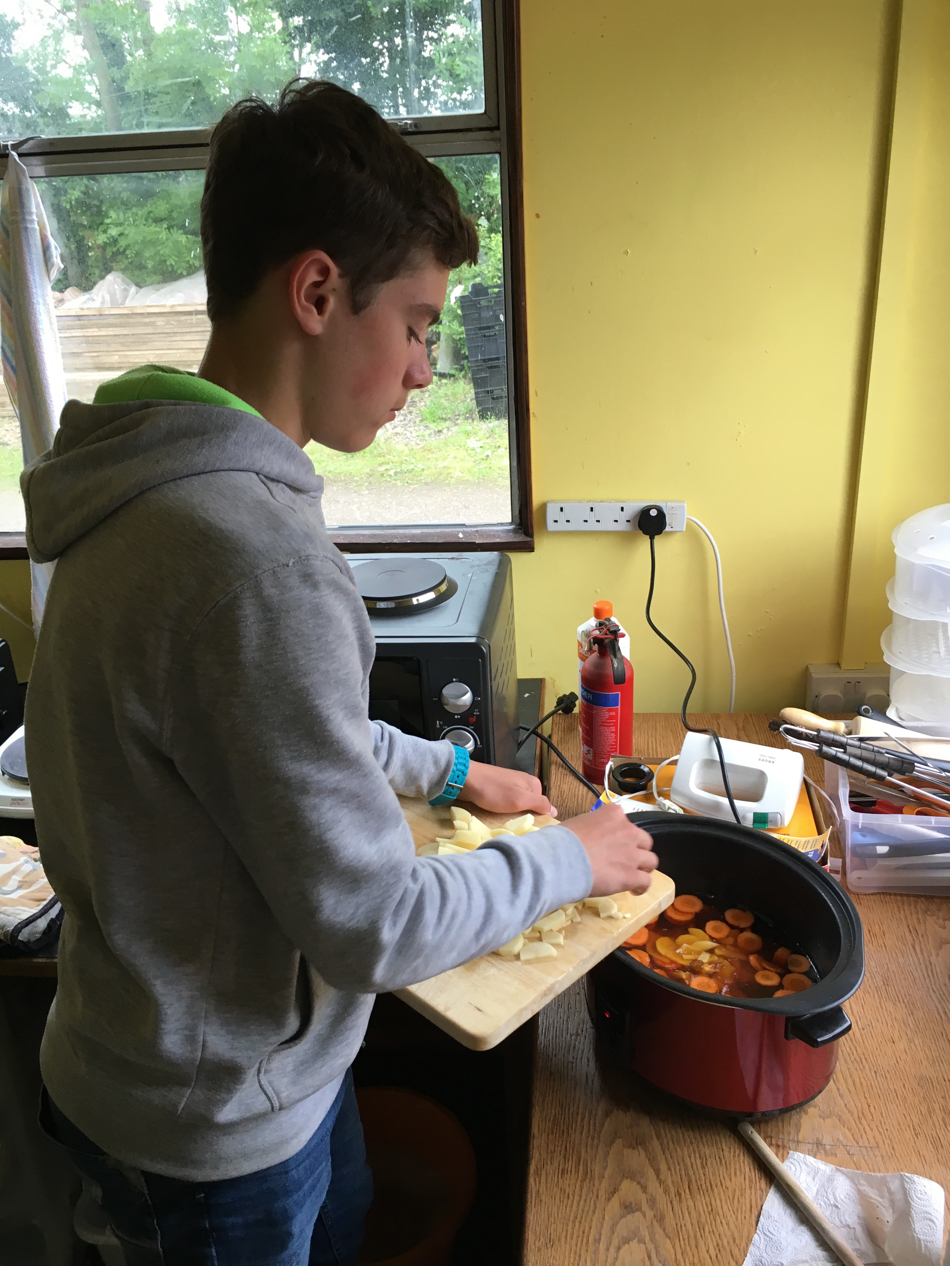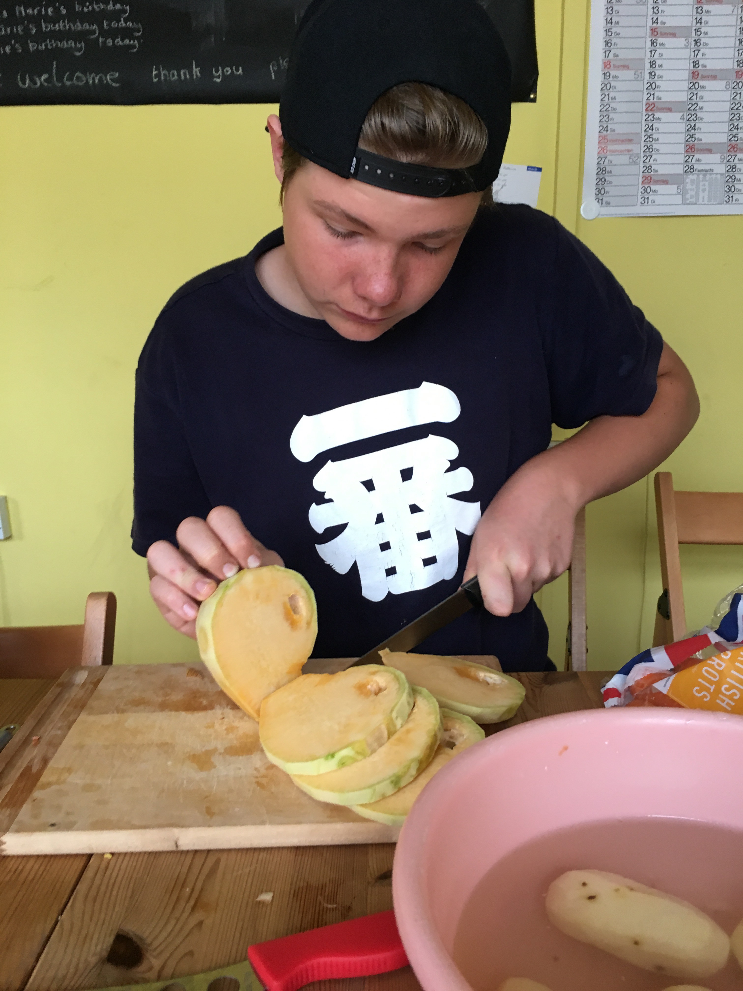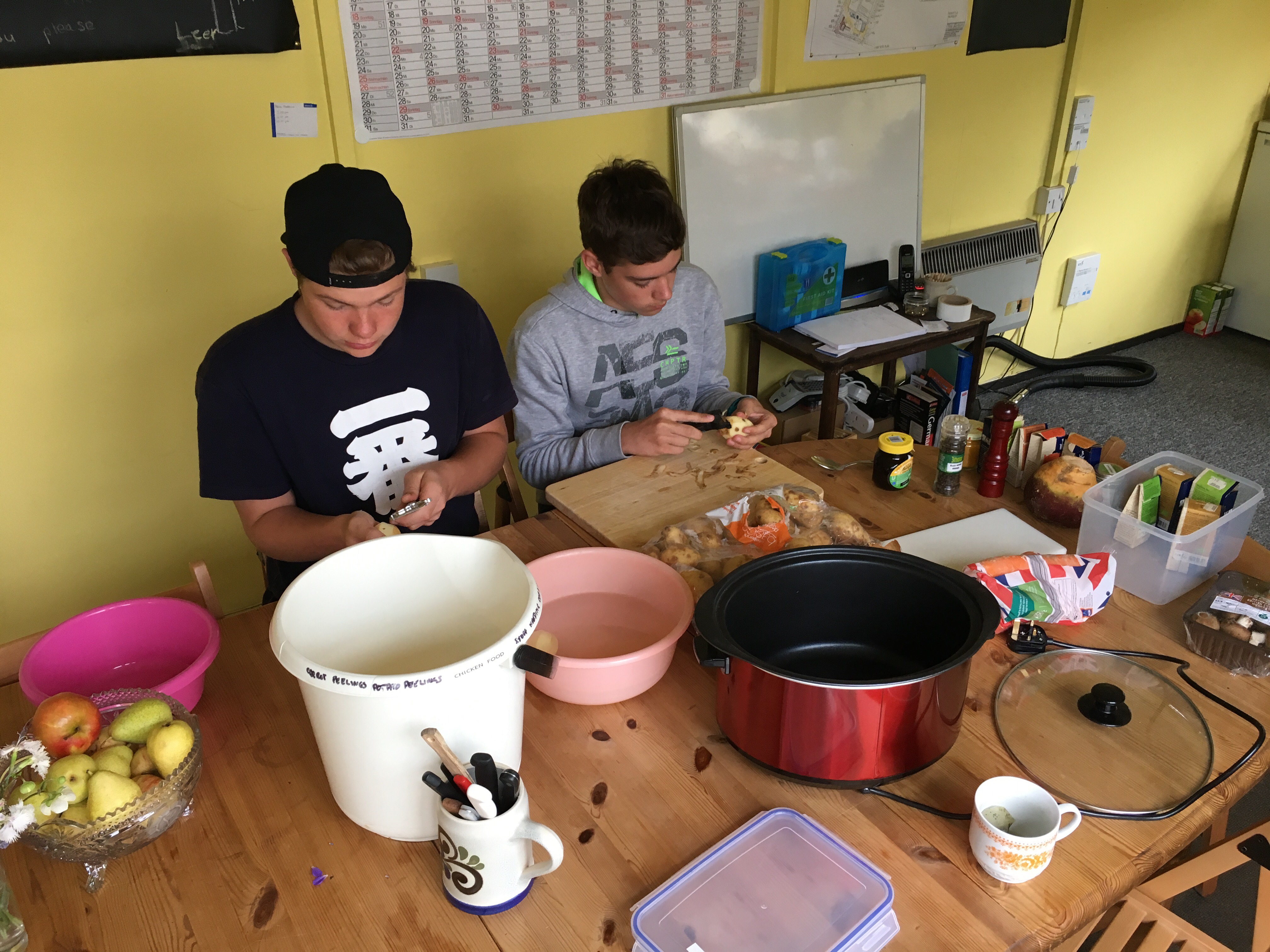 Männer an den Herd! Ganz emanzipiert und ziemlich geschickt unsere Jungs!! Jetzt köchelt das typisch englische Gericht 8!!! Stunden… wir werden berichten wie es geschmeckt hat… Die Mädels & Aaron bauen übrigens gerade ein Hochbeet…
