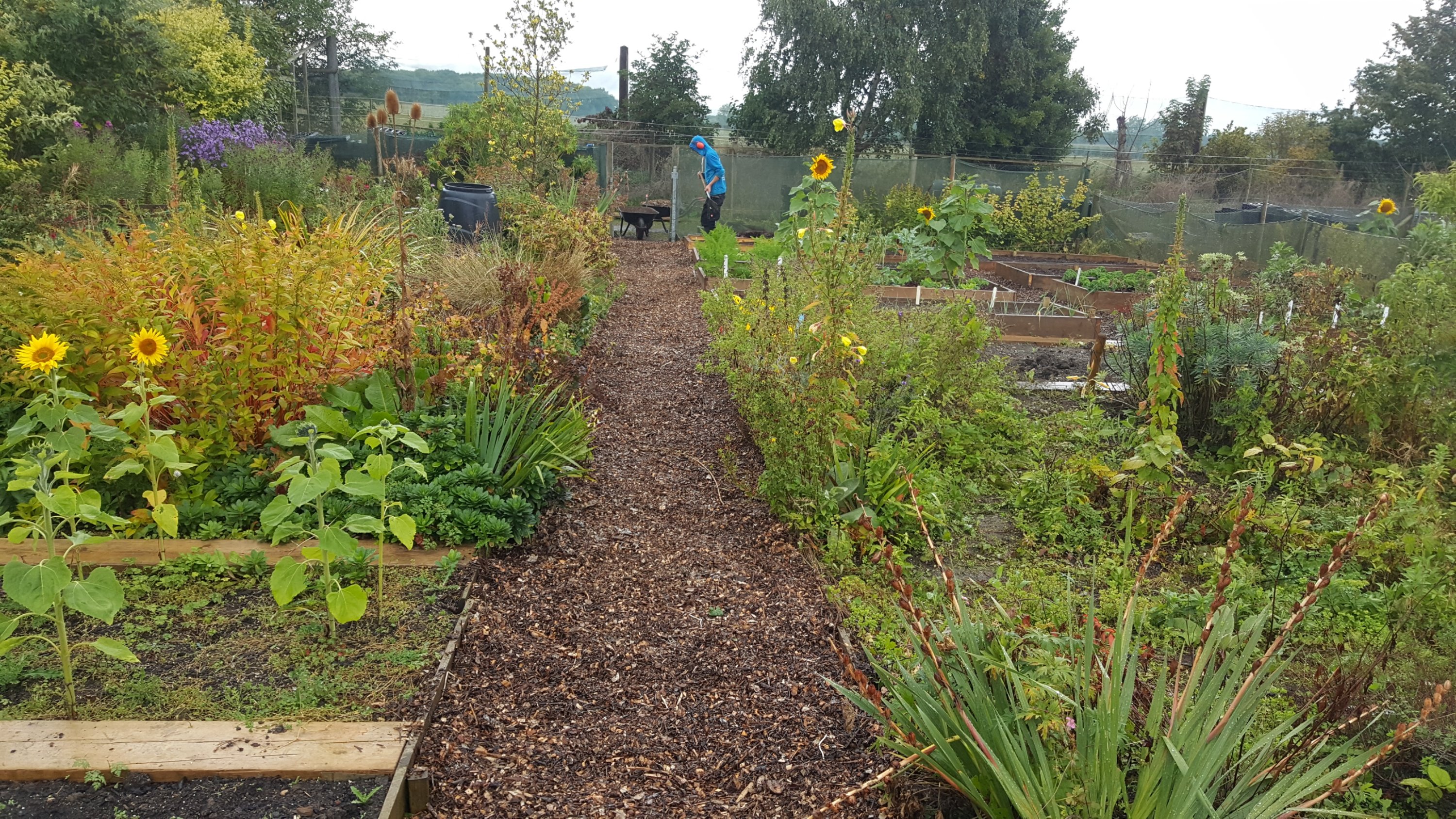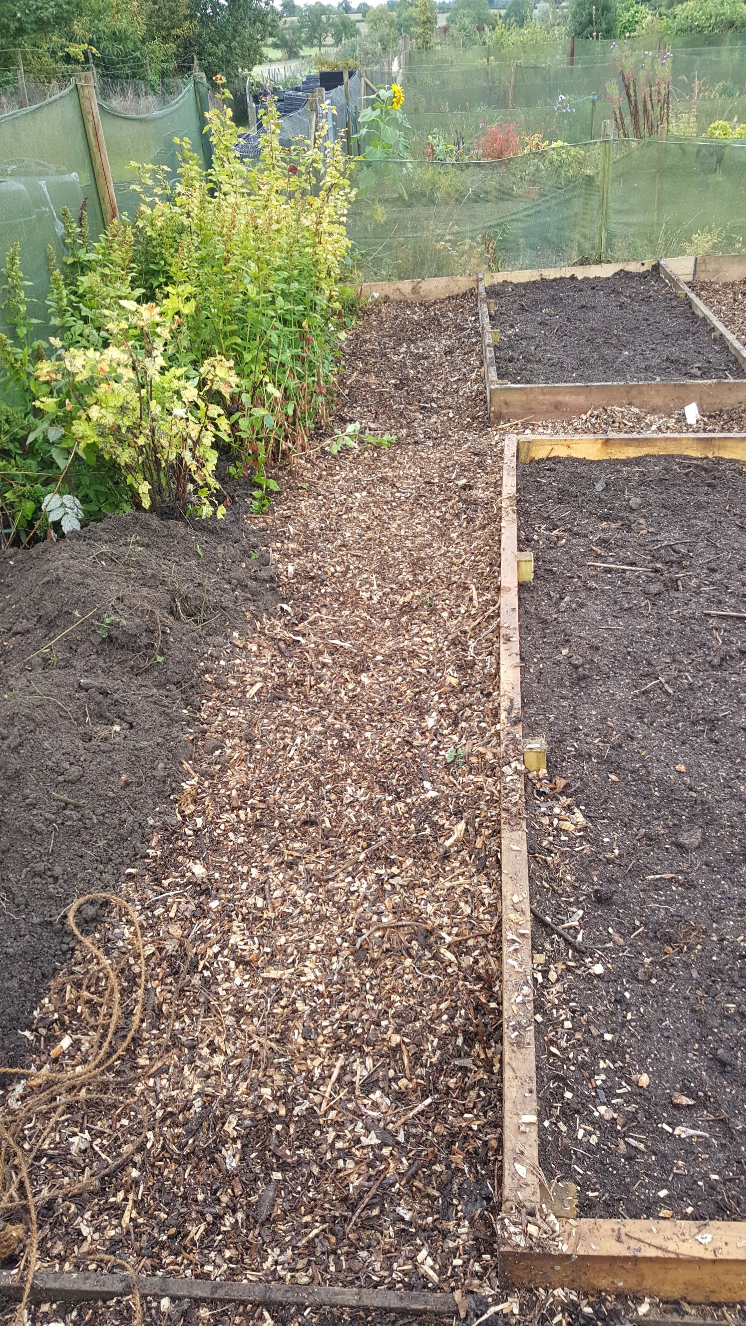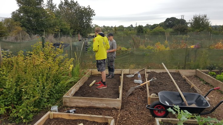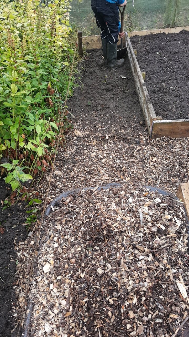 Heute hat Judy uns in der Gartengruppe die Aufgabe gegeben ein neues Hochbeet zu bauen und die Wege zu verbessern. Wir bauten erst das Hochbeet dann verbesserten wir die Wege. Da an den Zaun wo das Gartentor ist (siehe Bilder) auch noch 1 oder 2 Hochbeete hin sollen, schnitten wir erst die Pflanzen zurecht und dann buddelten wir den Weg und füllten in mit Hackschnitzeln auf.