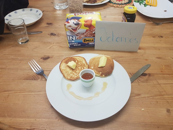 Ein besonderes Frühstück… Und besonders gutes Wetter. Heute Abend fahren wir noch ins Jumphouse.
