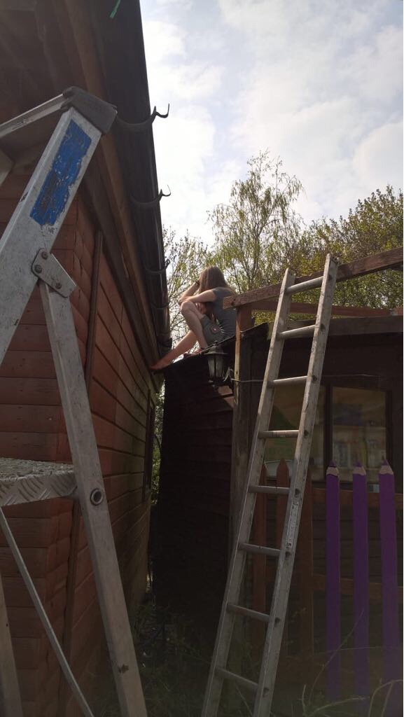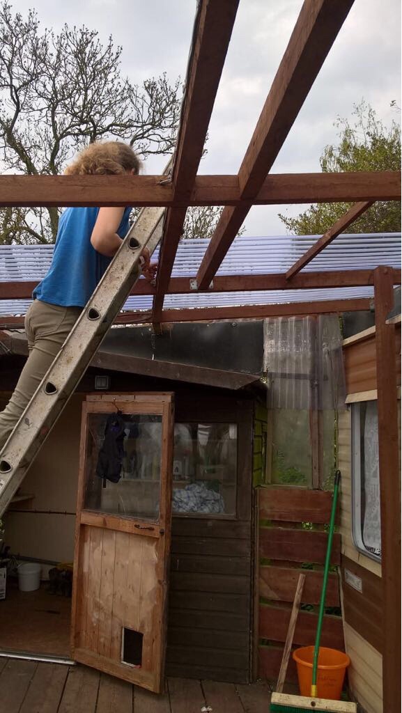 Am Samstag haben Paula, Ida, Marie und Sophie angefangen das Dach vom Mädchen Caravan zu decken.