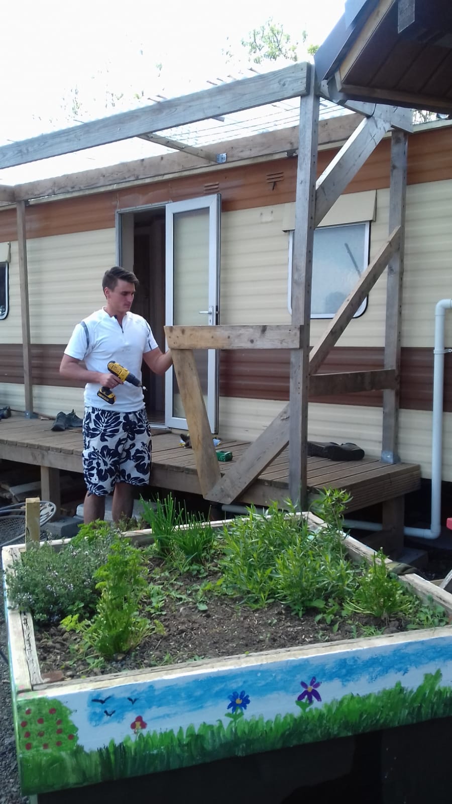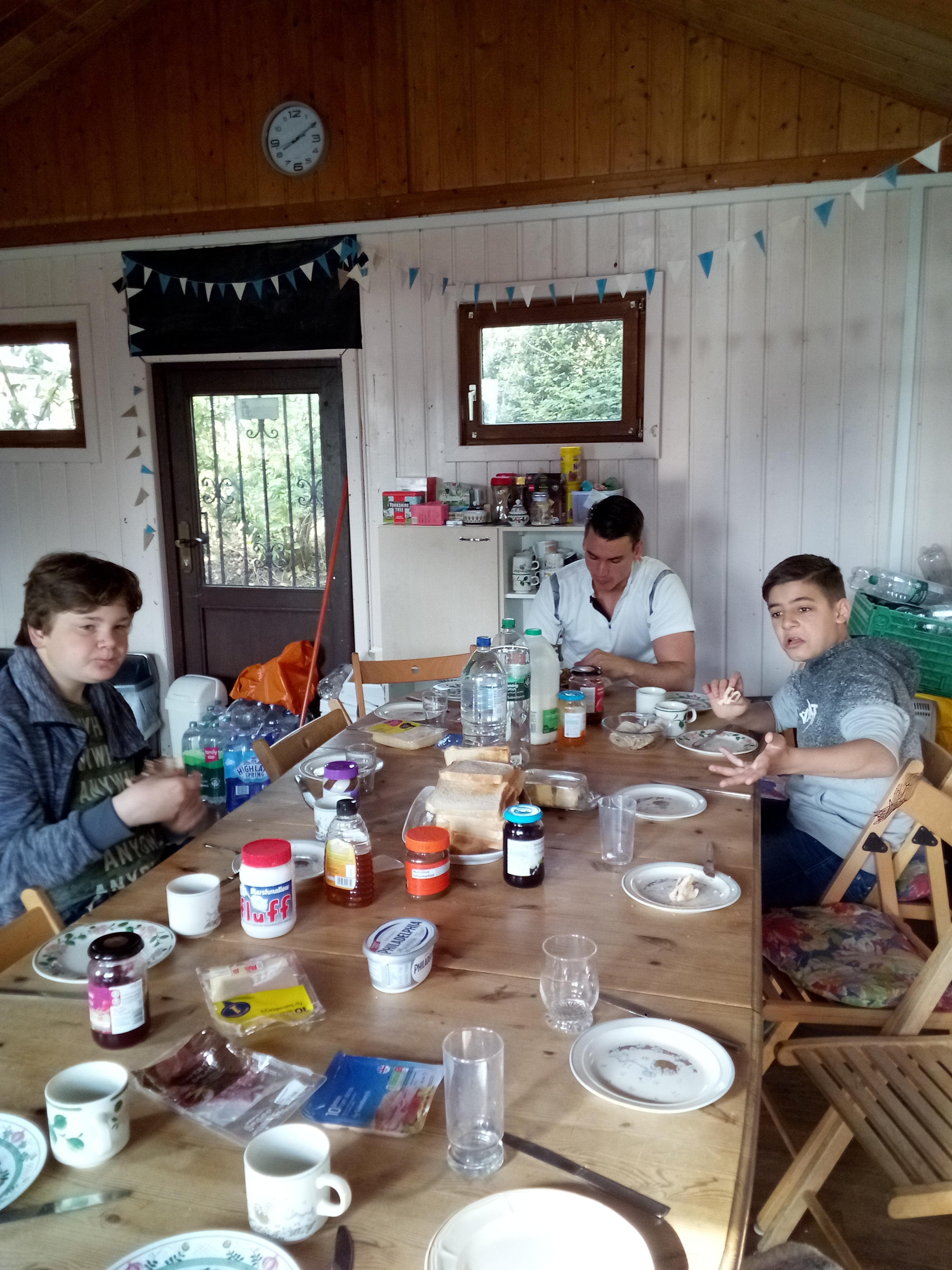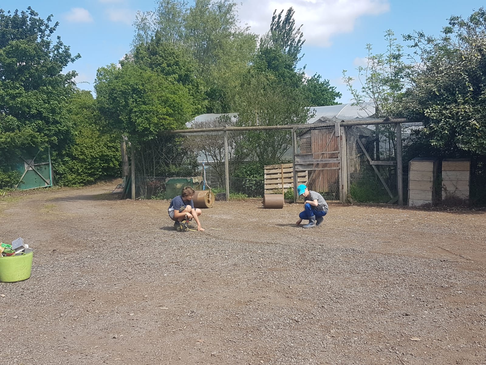 Die Küchengruppe macht Frühstück diesmal mit toastNach dem Auftritt beim bbc kommen vermehrt Kunden in die Nursery. Also wurde es Zeit für Parktaschen! Dazu musste der schotter In Stunden langer schwerstarbeit plattgewalzt. Das Ergebnis kann sich sehen lassen!Ein Paralellogram in Lebensgröße zu konstruieren war schwerer als gedacht.Trotz großen Widerspruchs wurde der schnellste Weg vom Boys Caravan zu Küche versperrt.