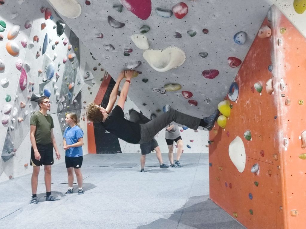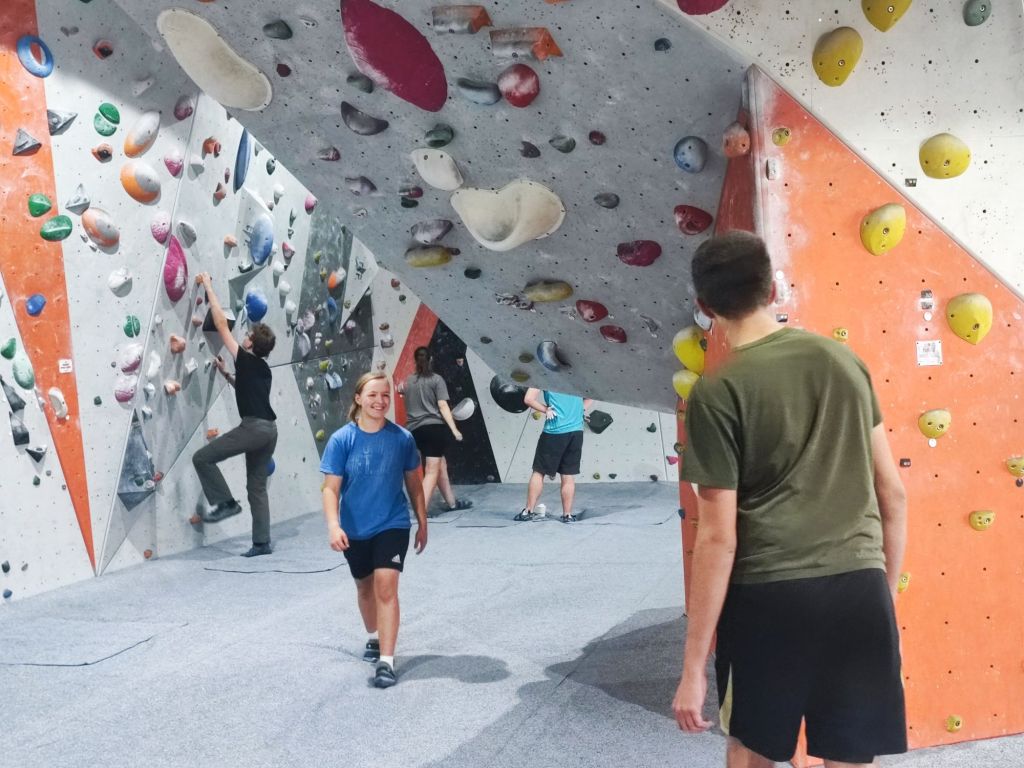 Today we split up into two groups, one wanted to go to Northampton with Saskia for grocery shopping. And later in the afternoon buying presents because one students birthday was tomorrow. But before they could even start three of the girls wanted to go shower but that turnt into an adventure because we told them many times don’t flood our caravan. The cause of us saying that is because yesterday one of the girls was showering and then we noticed the water was already halfway to the living room. But luckily today the showering people didn’t flood our caravan by so the group could go shopping. In Northampton when they wanted to park they did it in a parking garage and the ceiling came closer and closer. At the end there where like 3 centimeters of space left. In Northampton they split Saskia and one student left to check if the bankcard was working but it didn’t so they ate cake while waiting for the girls. While the girls where shopping they wanted to take the elevator but accidentally drove to the highest point of the parking garage then the elevator couldn’t bring them down they had to walk. They were completely lost but eventually made it back to the group. The other group was only three students and Kevin they wanted to go bouldering. So on the website it said they would open at 14:30 pm but when we arrived there was a letter that said they would open at 17:30 pm so we wanted to drive back to the nursery. Kevin had to make a stop at the gas station when he wanted to pay both of his bank cards didn’t work so he has to go to the ATM they had there. Later in the car he realized with shock that they had made him pay a 13,8% exchange fey for the money. Back home Kevin had the idea to hide the Nutella from the girls. He put them on a cupboard with the empty Nutella glasses. Sadly it didn’t work because he did the same last time. Then on 17:30 pm they drove to the climbing hall again this time it was open and they could go climb.