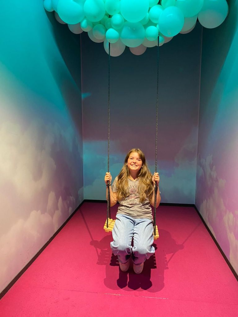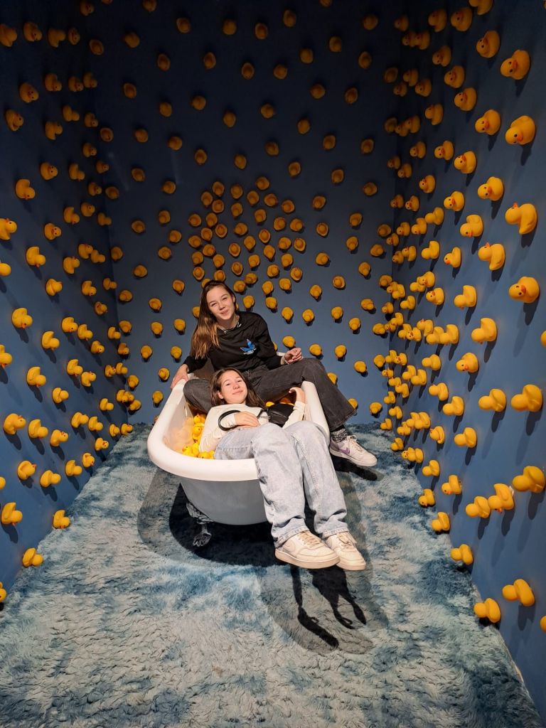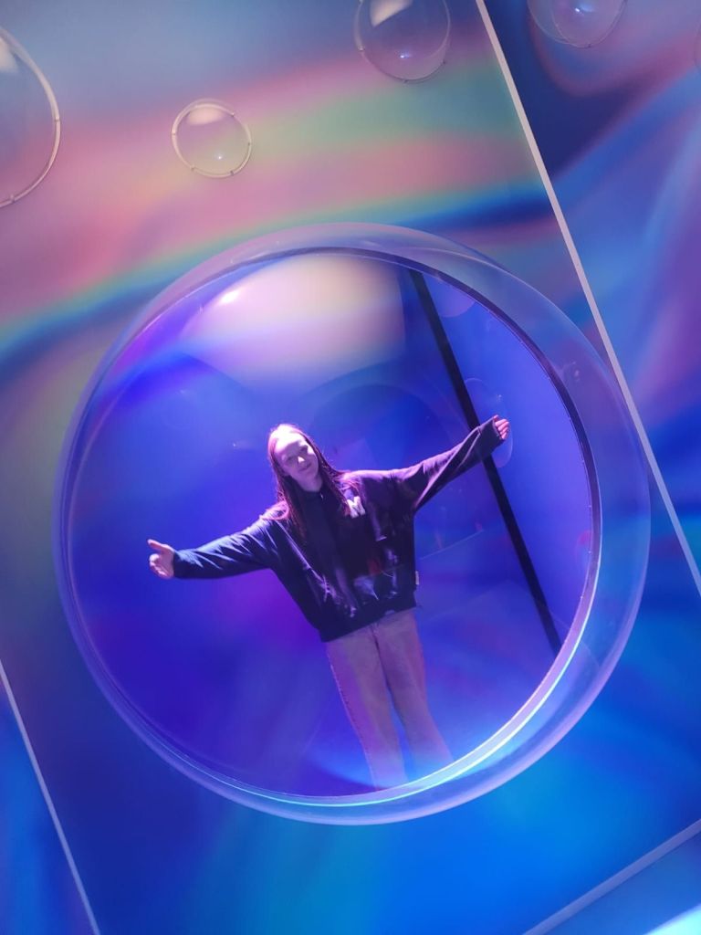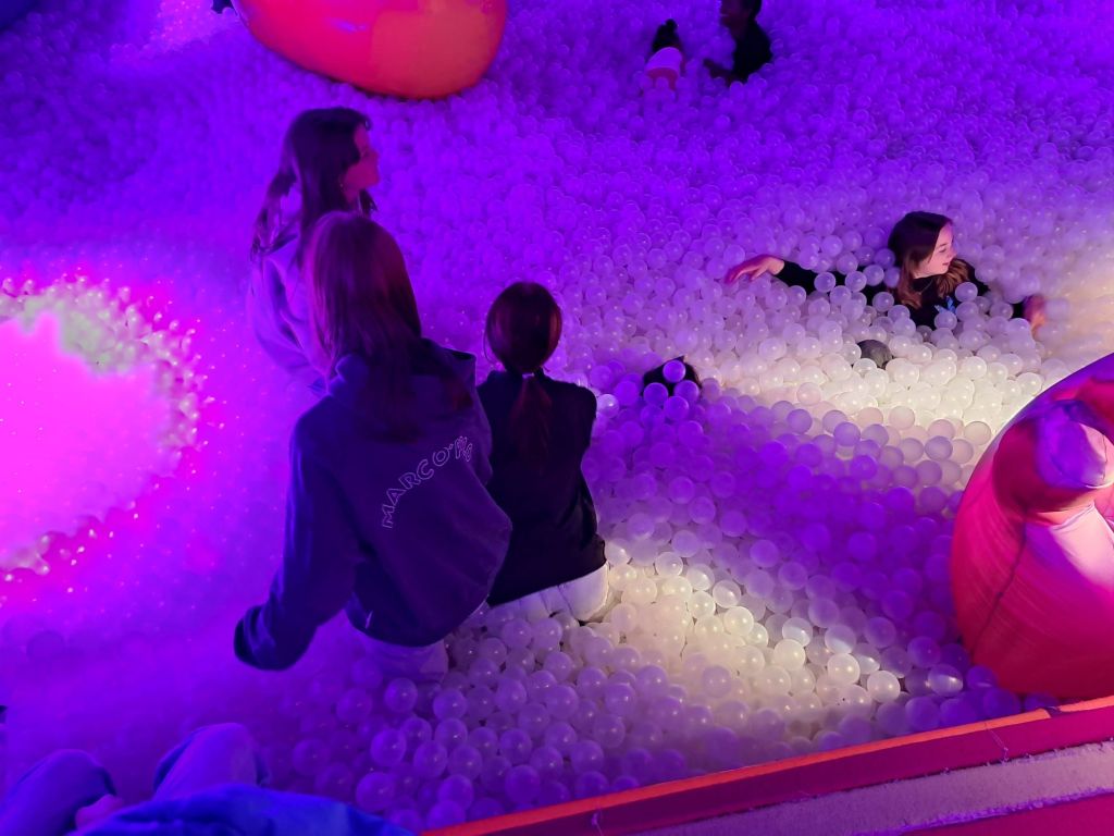 We wanted to go to London that day because it was my birthday. In the morning everyone congratulated me. After eating breakfast, everyone got ready because we wanted to leave for the train station at 9 a.m. When we arrived at the train station we all went in and a few of our group bought the tickets. Our train was already there so we could get on straight away. We then took the train to Wembley. When we arrived we split into two groups. One went to the Wembley Stadium and the other go to the Bubble Planet. The group that go to the Wembley Stadium was first on a playground with sport equipment and than they go to the Wembley Stadium. The other group started directly in the Bubble Planet. In the first room was a floor with LED lights that had shown a underwater world. The next room was full with big balloons that flew around and people could go through. It was very nice and funny. In the third room was a really big bubbel, you could go in the bubble and sit on cushions and listen to the music that was playing. Then came a big ball pool with a giant duck and a ball in it. We was the longest time in this room because it was really funny. In the next room came many digital games, like a game where you can press a button and a famouse painting (Mona Lisa) made a chewing gum bubble and much more. Then comes a room with a hologram on the wall and in the middle of the room was a big net with balloons, the photo backdrop was in the other room. Zoé put her jacket on the floor to go into one of the sets. In that moment Inga says that there is a big spider in the jacket. Nobody believed her until Zoè lifted her jacket and the spider crawled over the floor. The employee was scared herself so she called in another employee.