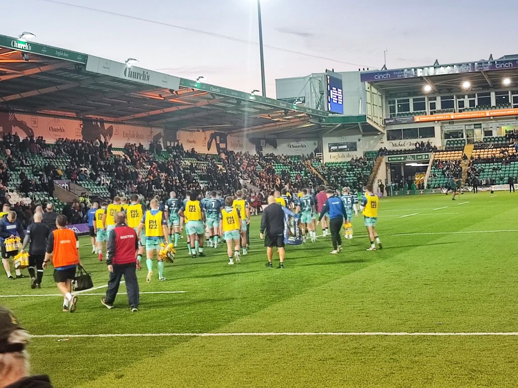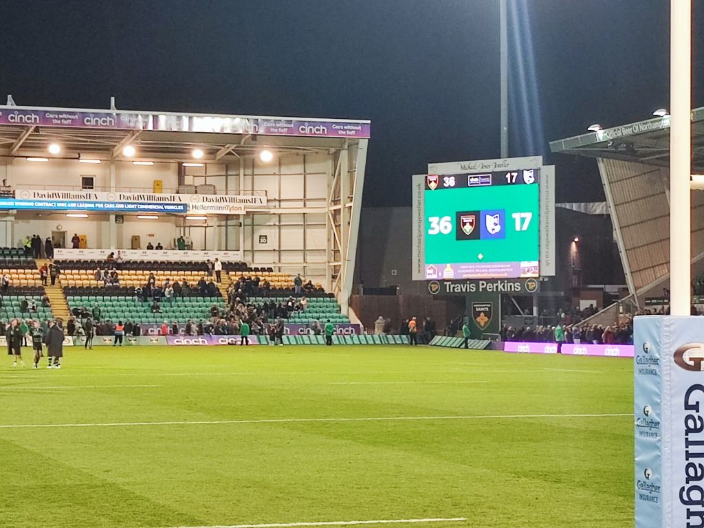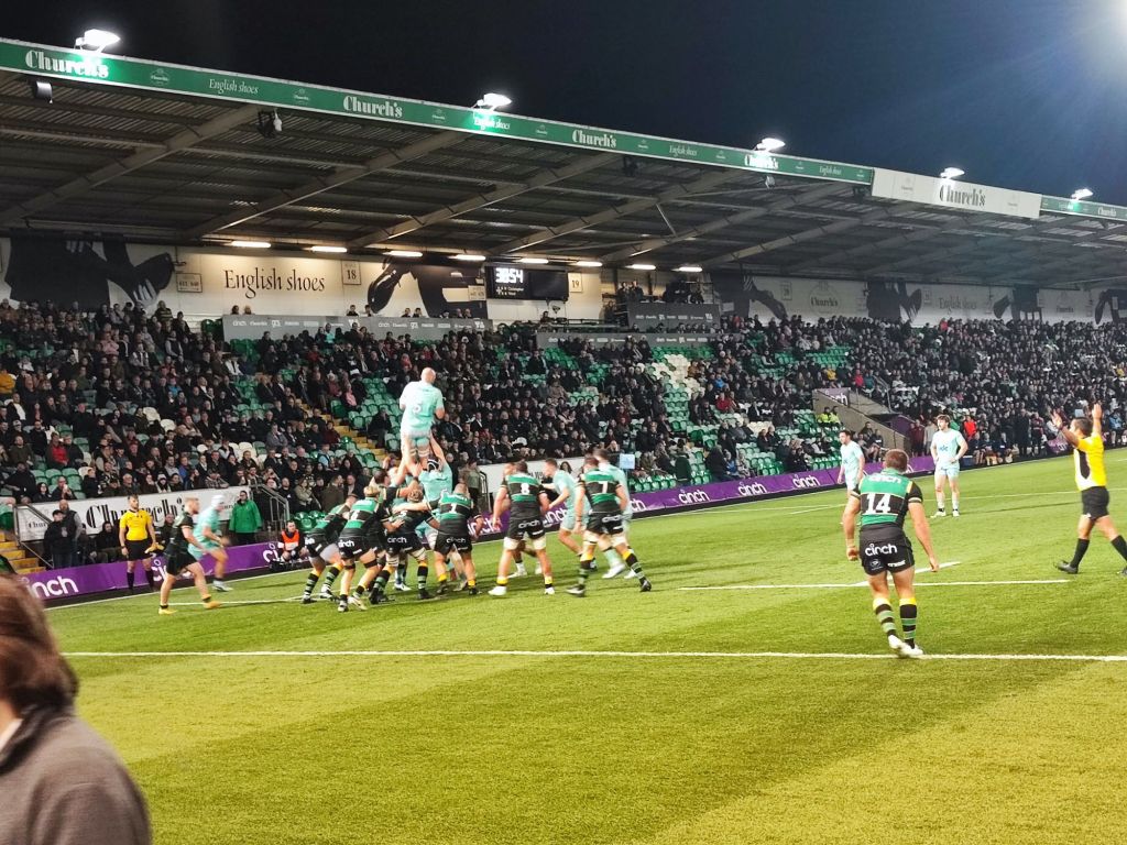 When we wanted to drive off, we first had to find a parking space, which took a while. When we got to the parking space and got out of the car, we looked for the shortest route and started walking. Kevin and Anne kept complaining that Melina was walking too slowly. At the stadium itself, everyone with a bag had to hand theirs in to check. Then Saskia opened the tickets on her smartphone and we went through one by one, but when Saskia finally wanted to go through, it didn’t work. It went on like that for a while until Saskia discovered it. The mistake was a ticket was scanned and no one went through. Saskia was allowed to go in, and we looked for our seats. Our seats were 1 to 12, block 12. At the beginning there was a memorial ceremony for the deceased captain of Northampton: Mobbs. After that the game started. The first try (like a touchdown) was from Northampton. At the end Northampton also won. On the way back we thought we are going in the wrong direction, but we hadn’t. When we got back we thought one of us had left the music on, but there was actually just a festival on the other side of the street.