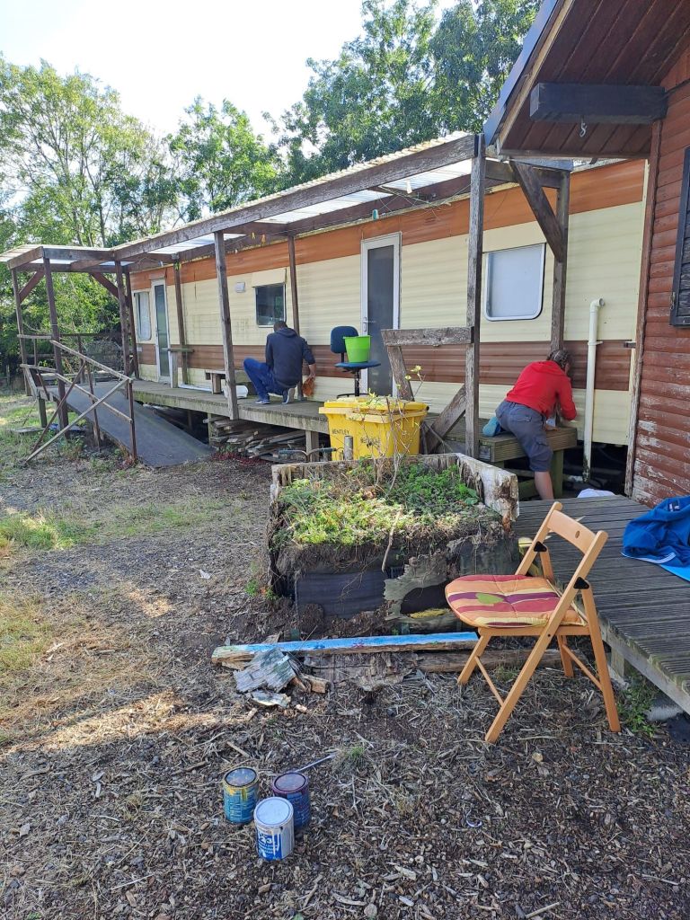 Today we stayed at home because the past days were being very exhausting. In the morning we all were having breakfast together, except Melina and Emilia, they were still sleeping so we decided that they could clean up the kitchen. After breakfast a few of the group went in there rooms, rest in the kitchen and Lenz, Mia and Saskia helped Tiny to clean the paths at the flower beds. Around half past twelve Anne, Sarah and Linus cooked pasta with a special sauce from Anne and Sarah. At 1 pm was lunch ready and we all eat together. After Lunch Saskia told us that a school from Northampton is coming on Friday, so we cleaned the caravans and the outdoor areal from the Nursery. I also cleaned the kitchen so that it was clean again. On 4 pm most of the group were driving with Saskia to a jump arena. Meanwhile Lenz, Kevin and I stayed in the Nursery. Lenz and Kevin were building a raised bed because the one for the kitchen was completely broken. Around half past six Saskia and the other’s came back to the Nursery. When they were home we eat bread and pasta for dinner. After dinner Kevin and Lenz continued to build the raised bed. To the same time Anne braided Mia‘s hair in two big braids. The rest of the group was in the kitchen and in there rooms. In the evening we played werewolf before we were going to bed.