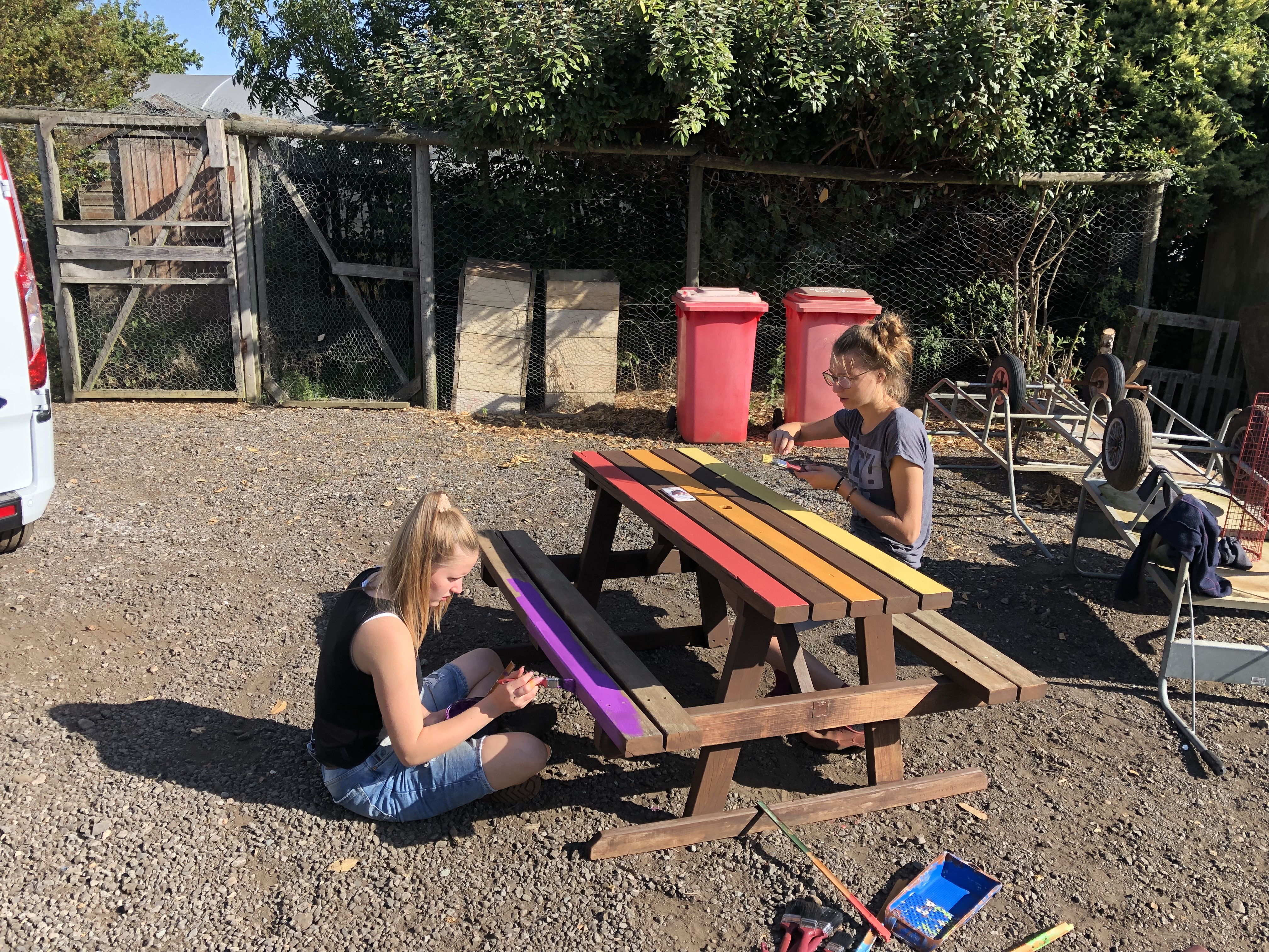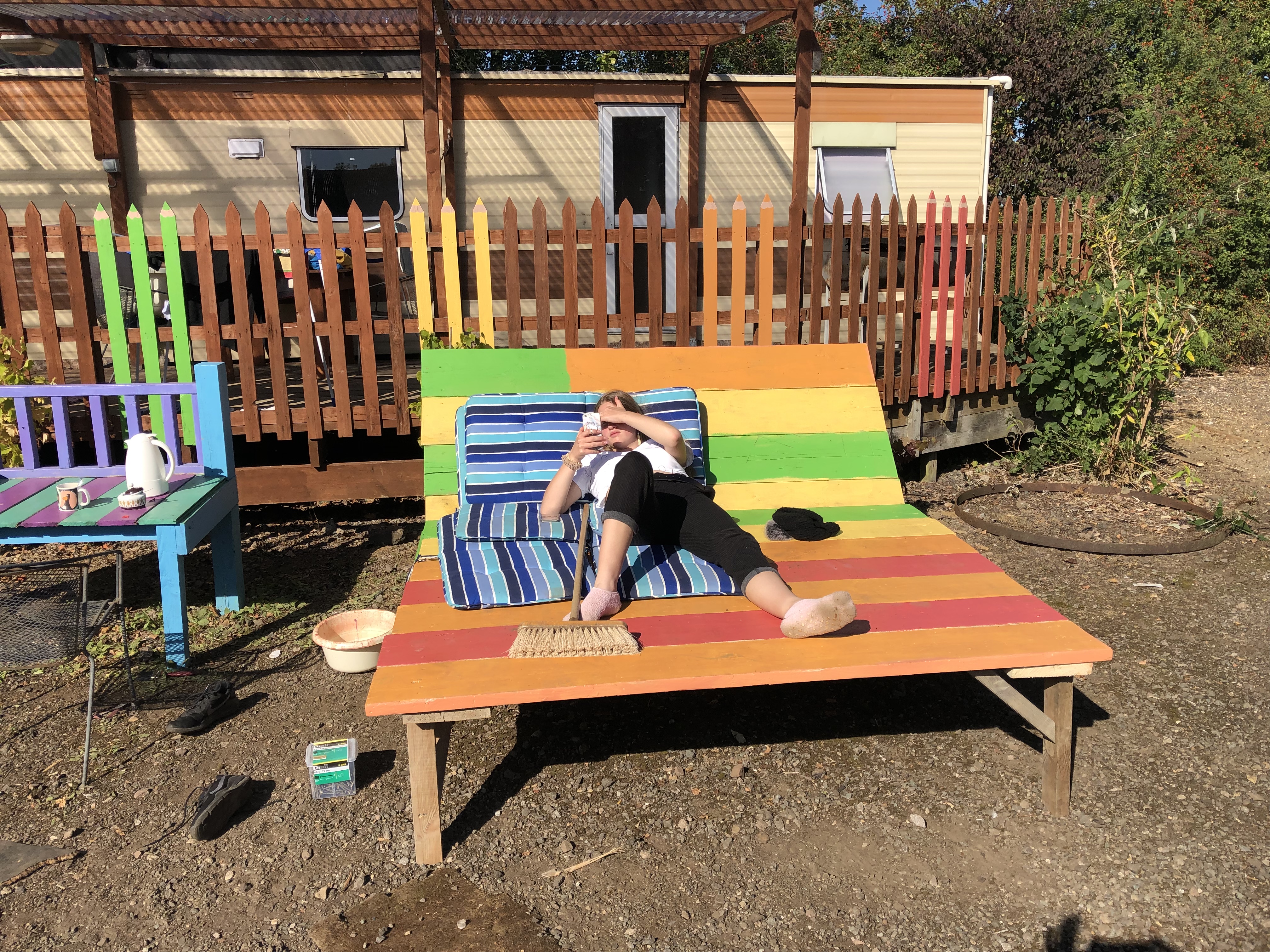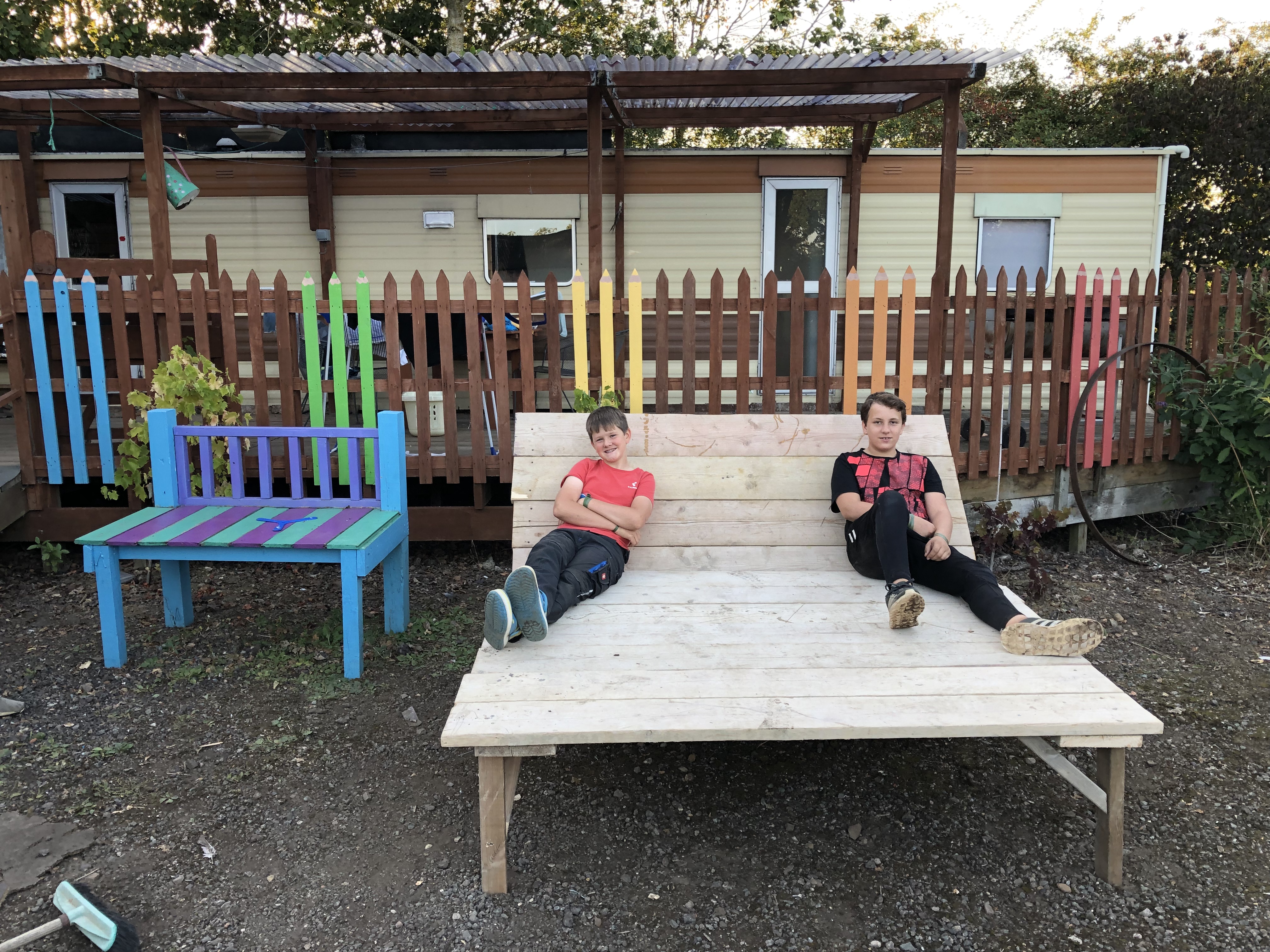 We stayed at the caravans to take a break. A pair of us went shopping and the rest of us just chilled in their rooms. We put all together the food in the kitchen and sorted it. Afterwards, Saskia, Melissa, Sophie, Inga and I go for a walk. While this, Maël was cuting Jannis‘ hair and all I can say is that it takes some getting used to. For dinner we had the rests of the last days and sausages , vegetarian and with meat. We didn’t do not so much because everyone was tired.